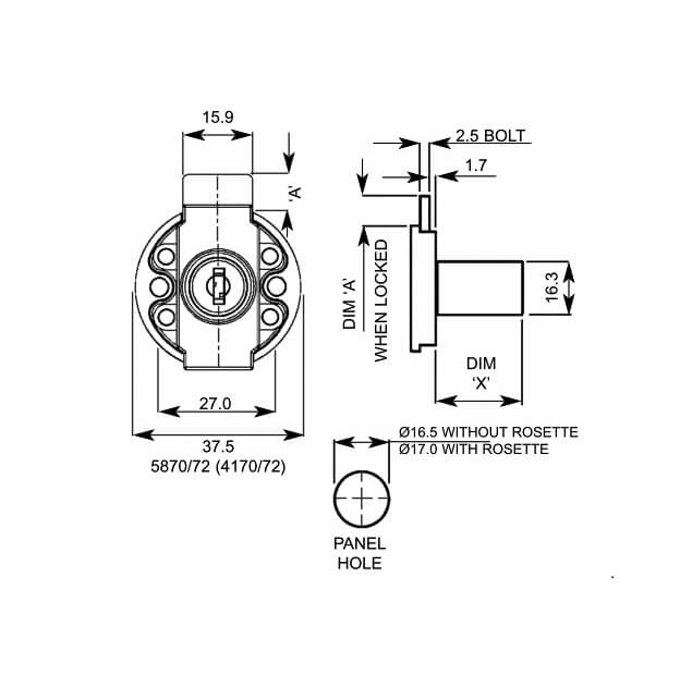 This L&F 4170 nickel plated finished desk drawer lock uses screw fix fixing.Â