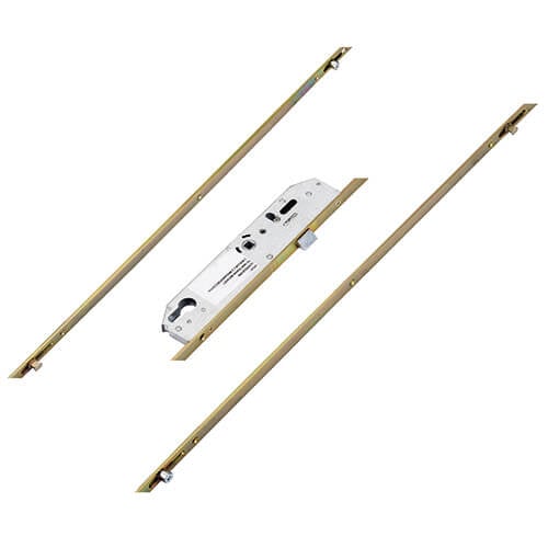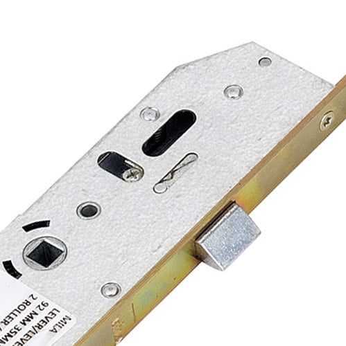 This Mila Standard multipoint door lock features 2 Rollers, 2 Mushrooms & 1 Latch.
