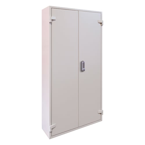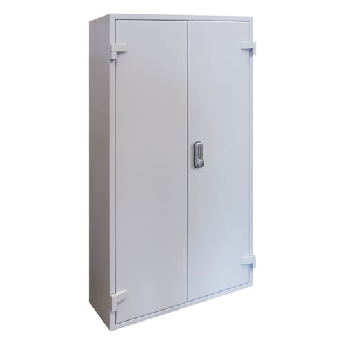 LOCKING: KC0070E – Fitted with a high quality electronic lock with key override facility. Tested in accordance with BS EN1634-1 2008. Programmable with a 4-6 digit code and can store up to 80 user codes. Tamper time out and low battery warning.