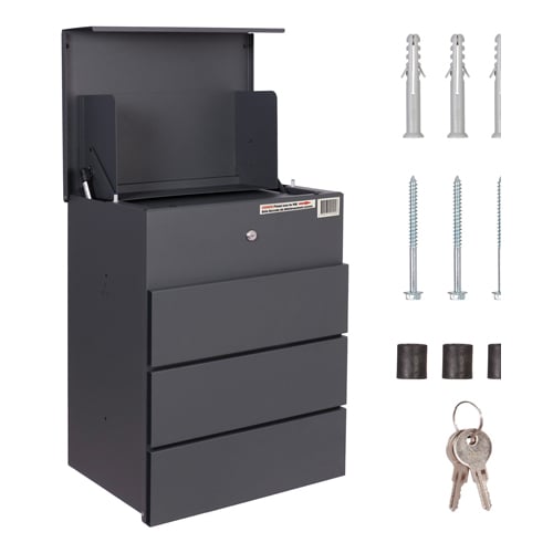 WATER RESISTANT – Designed to protect your parcels from all weather conditions with a sloped overhang top and a rust resistant, weather proof powder coating.
