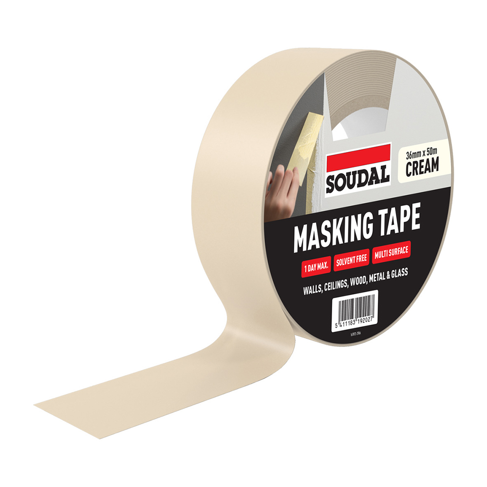 Masking Tape (1 Day) is a general purpose tape with solvent free adhesion, ideal for masking on most materials and surfaces. Effectively protects from paint, ideal for use on walls, ceilings, wood, metal and glass. Designed to be adhered on surfaces for 1 day.