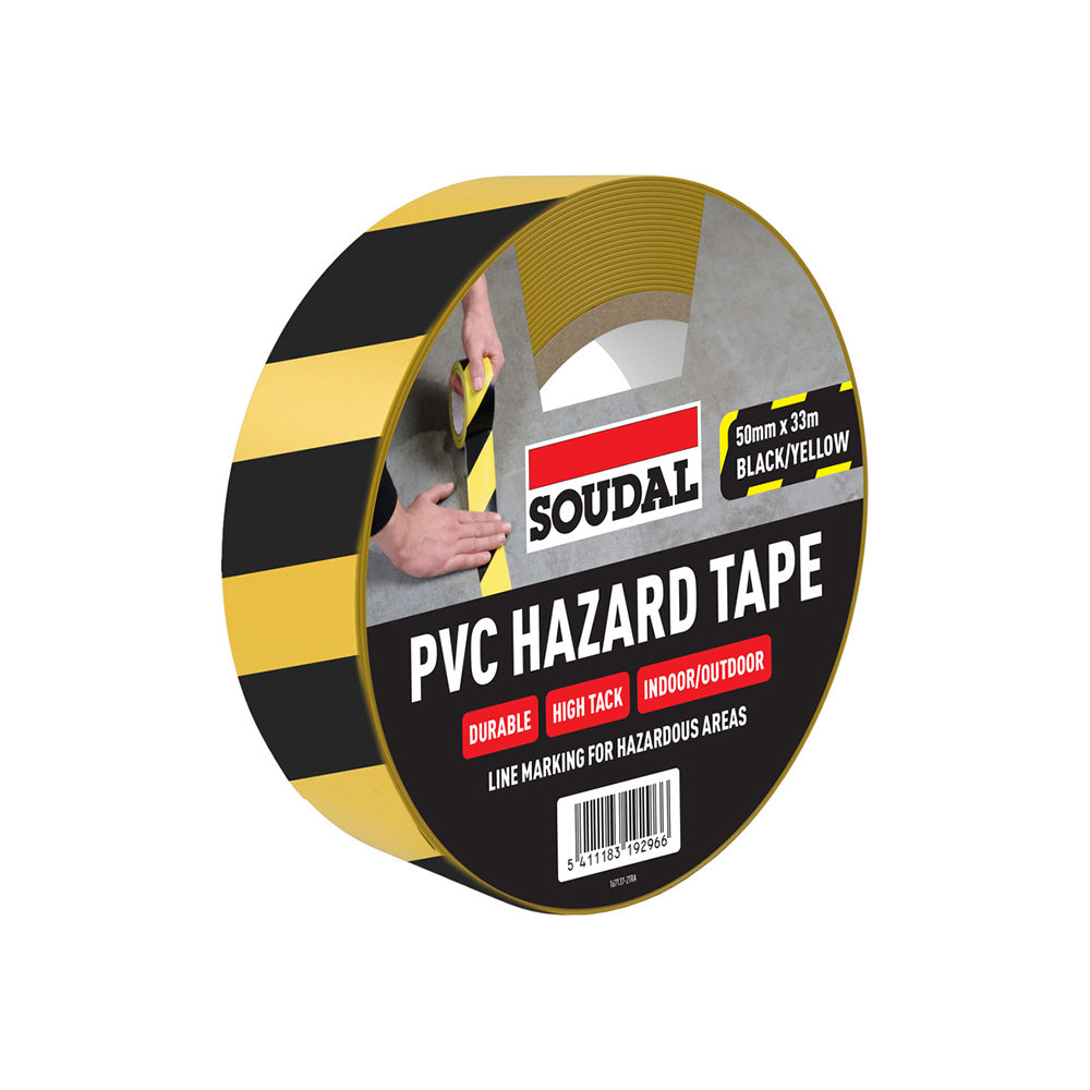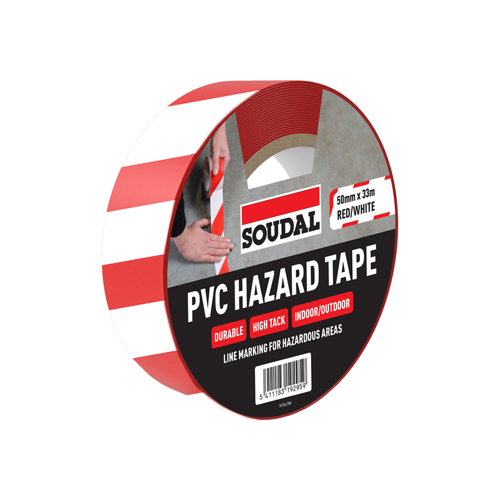 High quality, red and white PVC hazard tape with strong adhesion and excellent durability. A flexible tape with good abrasion resistance, suitable for identification of hazards and safety areas.