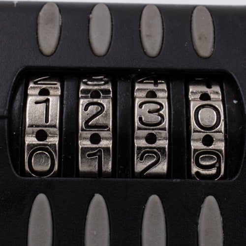 Squire Cp50 Comb Padlock Open Shackle 50mm With Chain, Shackle Thickness 8mm, Clearance 27X22mm, 4 Wheel, Complete With Chain Attached