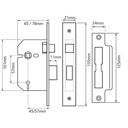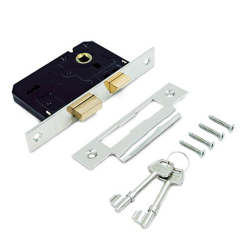 Available in brass and chrome, this lock comes supplied with 2 keys, keep and fixing screws.