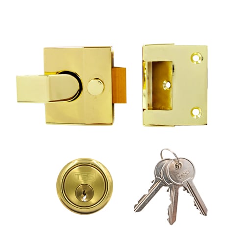This is a deadlocking nightlatch and offers the ability to use the key from the outside to deadlock the door once shut. When deadlocked, the internal handle will not operate. This offers additional security from intruders who may attempt to manipulate the inside handle via the letterbox, or through open or broken windows.