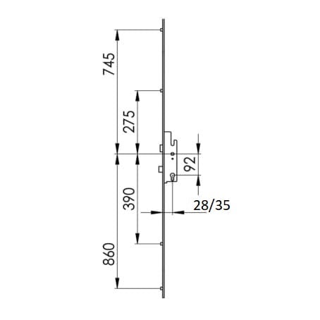 This TSS multipoint door lock features 4 Rollers, 1 Deadbolt & 1 Latch.