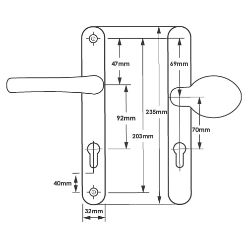 Offset Centres, Internal PZ = 92mm, External PZ = 70mm