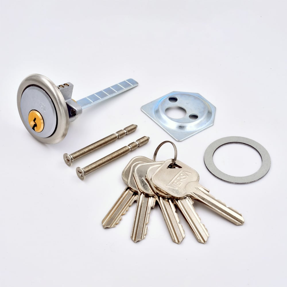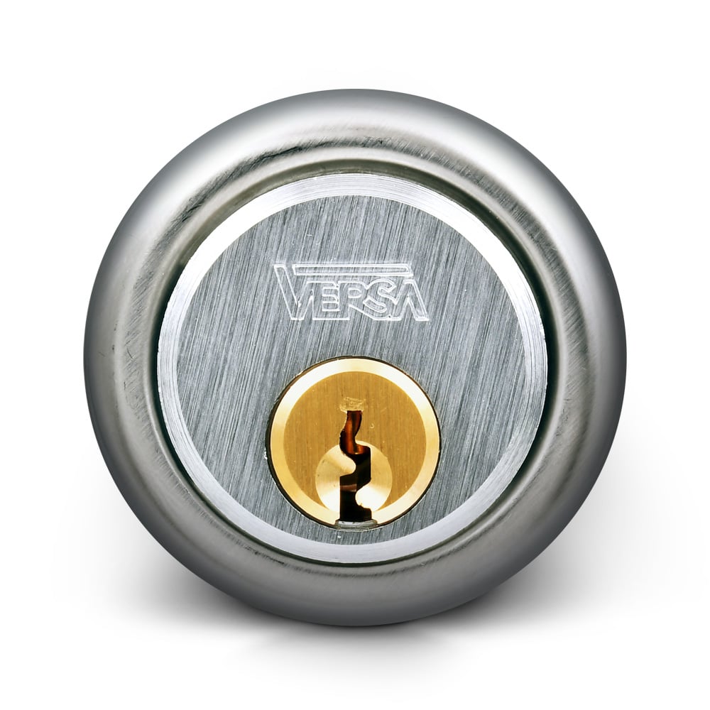 This is the VERSA rim cylinder using an open profile to allow keys to be cut easily. It has a Quality 5 pin mechanism and has a dual finish,