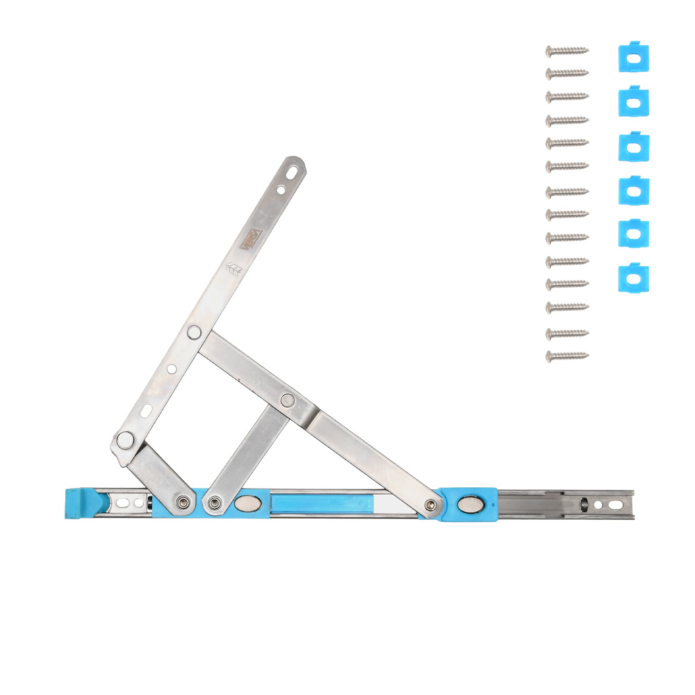These hinges are restricted with a button that allows you to further open the window in the event of an emergency. The button also allows you slide the window forward to allow for easy cleaning