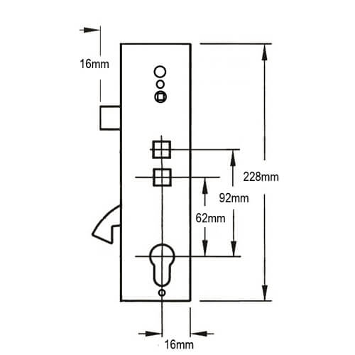 This gearbox is available with a 35mm backset, features a latch and deadbolt, and is unsprung.