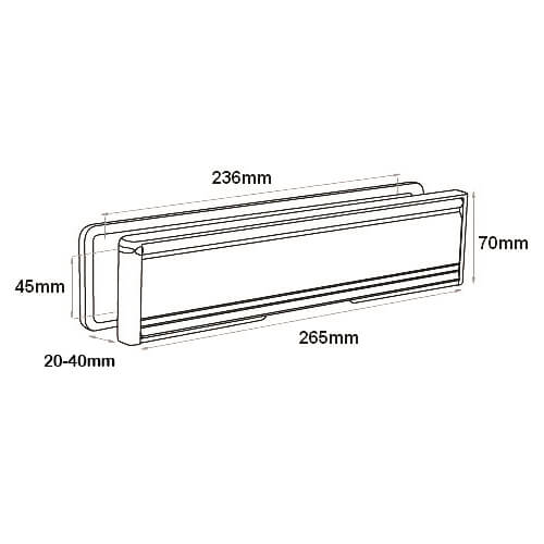 Complies with BS2911 with a 140 degree flap opening. Security fixings. External gasket, black frame. Suits door thickness of 18mm – 38mm.