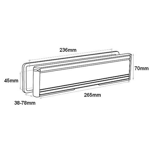 Complies with BS2911 with a 140 degreeflap opening. Security fixings, external gasket.Narrow width letterplate and a brush seal Standard height telescopic letter plate with double brush seal and radiused edges for use on UPVC doors.