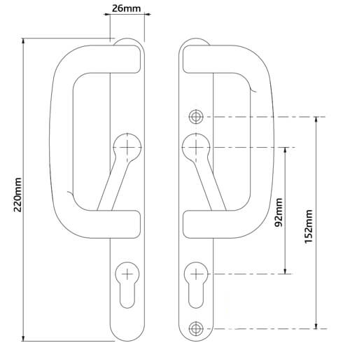 Winlock Bombardier patio door handle set is designed for sliding patio doors.